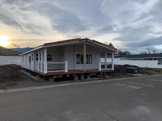Here's a new listing at #72 in popular Mountain View Estates, a 55+ community. Mountain View Estates is still owned by the local family that developed it in 1987. 21 homes of the 164 homes survived the Alameda Fire of 2020. The park is being restored & is now welcoming new and returning residents to this vibrant community. There's a brand-new dog park and mailbox kiosk with parking at the entry. This 1354sf brand-new Skyline 3 bedroom, 2 bath home has an open floor plan that is great for entertaining. The large master bedroom runs across the back of the home. Double vanity in the bathroom with a generous linen closet too. The kitchen & living area are in the front. There are plenty of counters & cabinets to please the cook. You've got plenty of space for your cars under the carport. An 8' covered front porch for enjoying the outdoors, too. Vinyl fencing & drought tolerant landscaping included along with sewer & trash. One small pet up to 25 lbs allowed. Interesting? You bet!