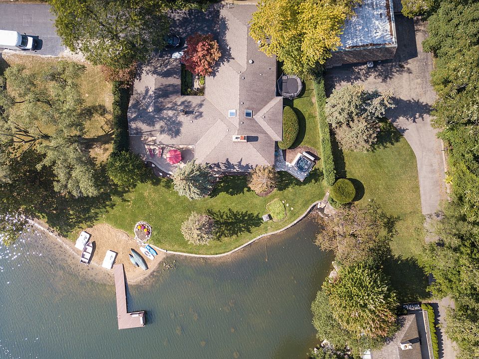 Experience an unparalleled lifestyle of privacy and seclusion in this extraordinary "Murphy Lake Frontage" property. Nestled on just over half an acre of pristine land, this rare waterfront gem offers an exclusive retreat, accessed only by a private road and perfectly situated at the end of the lane-ideal for a private gated entry. Why limit yourself to weekend lake getaways when you can enjoy the luxury of your own private lake every day? Located in Chicago's closest northwest suburb, this expansive U-shaped ranch home offers an extensive and breathtaking shoreline along Murphy Lake. With a private pier and your own personal beach, this residence is a sanctuary of unmatched beauty and tranquility. Inside, the home features four bedrooms plus an office, three fully remodeled bathrooms, and a stunning 38 x 13 ft sunroom with panoramic lake views. A secluded hot tub on the north side of the home is perfectly positioned for serene water views. Additional highlights include an oversized 2.5-car heated garage, a brick paver patio, two elegant stone fireplaces, newer vinyl windows, and more. The roof was recently replaced in December 2023. Brand new carriage style garage door and new Therma-Tru front door. The home is equipped with two-zone heating and central air, ensuring comfort year-round. Murphy Lake is a private 14.5-acre oasis, just 15 miles from downtown Chicago and a quick 10-minute drive from O'Hare. With only 32 homes and a private island, this secluded haven offers an exclusive living experience. An annual $600 association donation covers water and lake maintenance, including fish stocking, preserving the beauty and vitality of the lake. Don't miss the opportunity to own this one-of-a-kind property that seamlessly blends luxury, nature, and convenience. The floor plan is thoughtfully designed for an in-law or separate living arrangement, making it perfect for extended family or guests. Please note, the owner is a licensed Realtor.