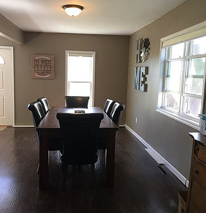 MOVE IN READY! 2 bedroom, 1 bathroom Featuring a large bathroom & separate laundry room, large entry way, open concept living room, dining room & kitchen. Two large storage spaces. Includes at 2 stall detached garage on 4 spacious lots with lots of trees.