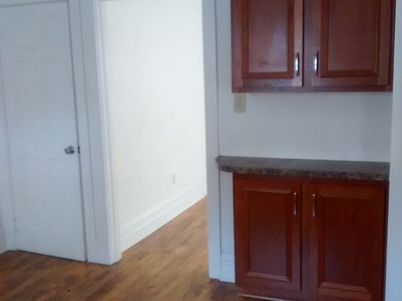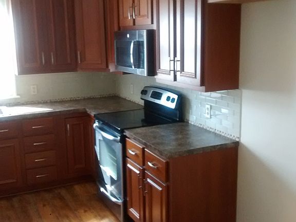 Half-double with 3BR and 1 Bath includes claw foot tub with shower kit. Tile floor. Finished bonus room on entire 3rd floor (formerly full attic) great for bedroom playroom or office. Full concrete basement with washer/dryer hookup. Oil/hot water heat with newer furnace. Nice yard and driveway. Mud room entrance. Kitchen has stainless steel range sink and microwave. Dishwasher hookup available. Hardwood flooring throughout. New roof and siding. Tenant pays utilities.