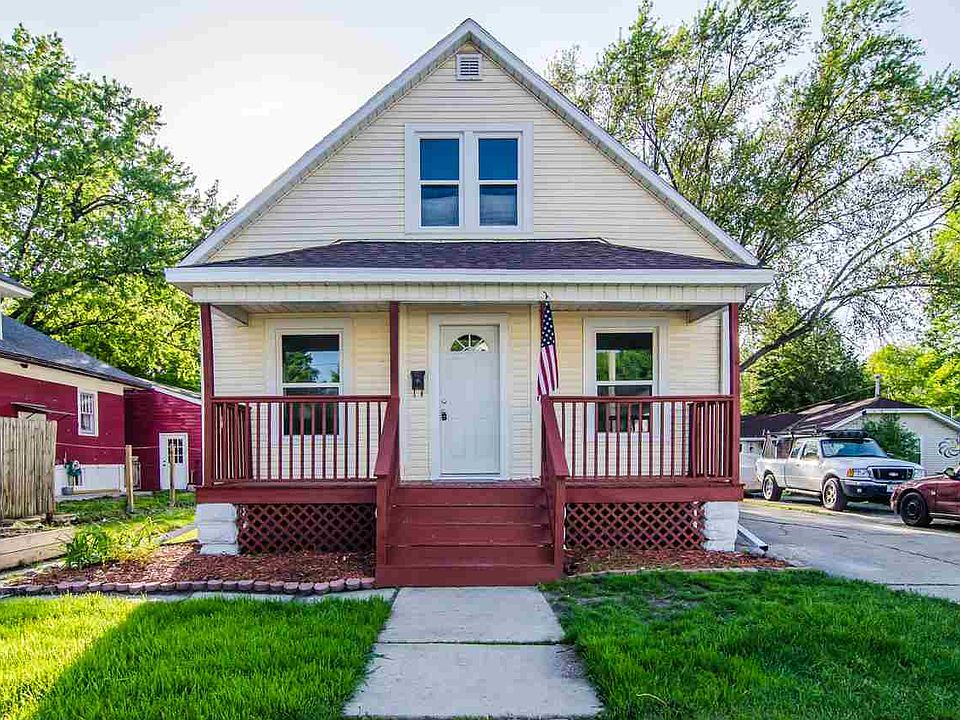 Nice curb appeal with freshly painted front porch and new landscaping. This affordable and updated 3 bedroom, 1 bath home has appealing updates including fresh paint and flooring throughout. White trim. Complete new kitchen with white cabinets, new countertops, subway tile backsplash, Stainless steel appliances and more. Formal dining room. Large bath is totally renovated. Nice sized bedrooms with one on the main floor and 2 more bedrooms on upper level. 1 stall garage. Walking distance to school and park.