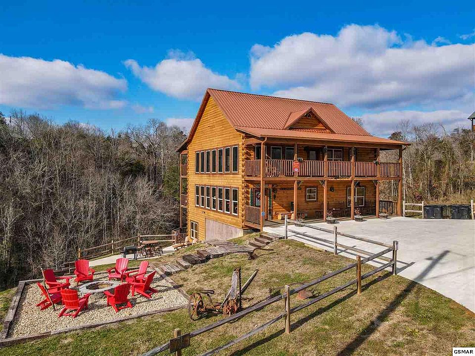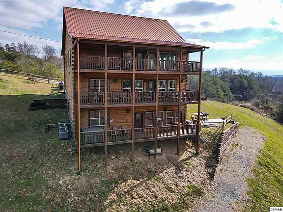 Beautiful custom design cabin with mountain views. Open floor plan with a large kitchen,stainless appliances and granite counter tops.Large great room and dining room and half bath. Two master bedrooms with baths.All this all the main level. The loft features a bed area and another master bedroom , spa bathroom with a walk-in shower and spa tub. The lower level has two bedrooms and bath,theater room,bar area,pool table and games. Make this your home away from home. This is a turn key property..
