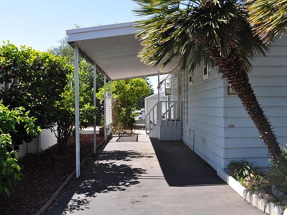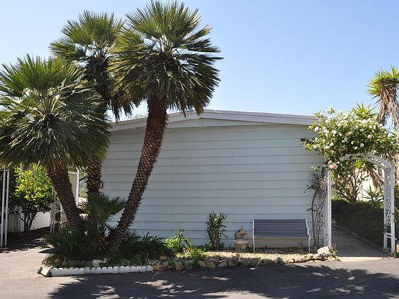 Darling cottage on the hill with fantastic views out to Hope Ranch! Low space rent just $499 per month. New carpeting & interior paint, new range & oven. 2 bedrooms, 2 baths, separate laundry room with bonus walk in closet. Spacious living & dining room, light and bright, open to kitchen with ceramic tiled counters. Wrap around covered view deck. 2 orange trees. Newly sealed roof. Dual pane windows and sliders throughout! Gated community for adults 55+, with pool, spa, private gym and golf course, billiards room, dog park and clubhouse!