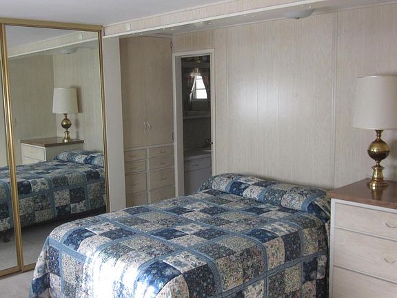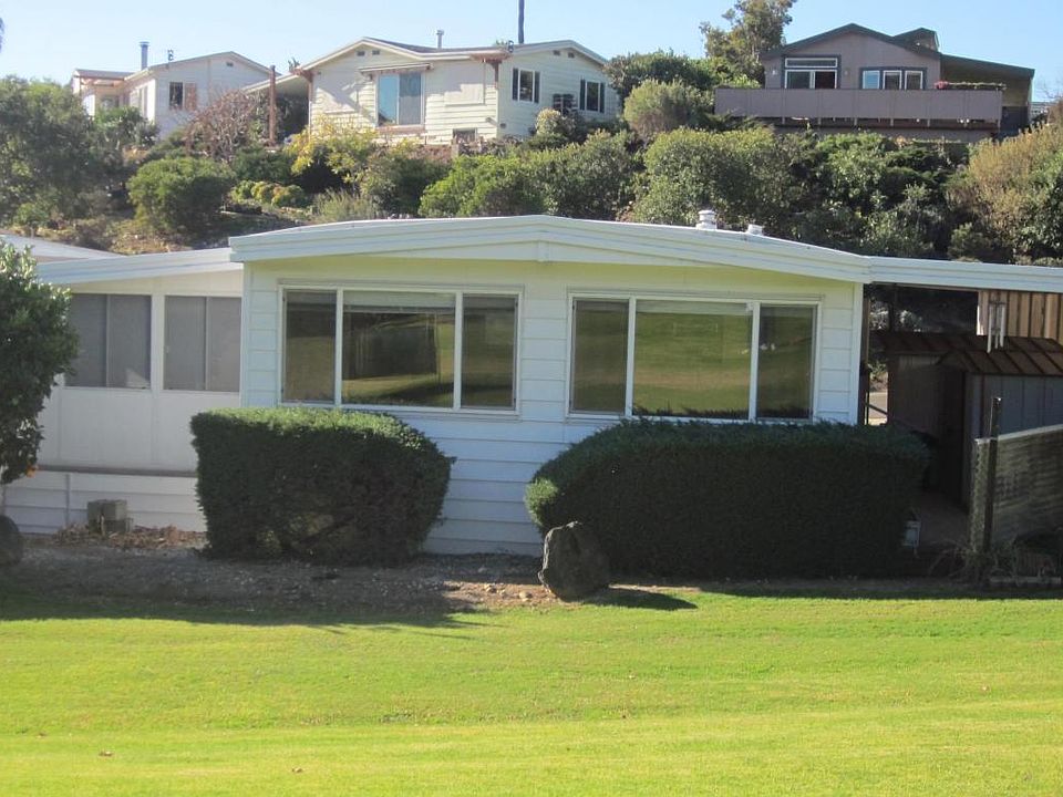 Rarely offered home right on the golf course! Mountain and fairway views!2 bedrooms, 2 baths, open living, dining & kitchen, light interior. Sunroom addition with permits. Re-sided exterior. Covered front porch and rear patio with great views! Lot will accomodate a new 27 x 60! Space rent $551.63. Gated senior park, adults 55+, with pool, spa, clubhouse & golf course!