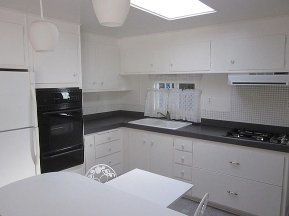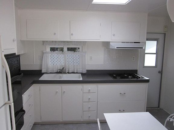 Lowest price in Rancho SB! Darling cottage, 20 x 47, with 2 bedrooms, 2 baths, updated kitchen, furnace, water heater and dual pane windows! VERY large lot with mountain views! Built in buffet/china cabinet, covered patio, deck off master bedroom, 2 sheds, 2 skylights. Gated community for adults 55+ with pool, spa,clubhouse & golf course. Space rent just $459 per month! Light, bright, and clean!
