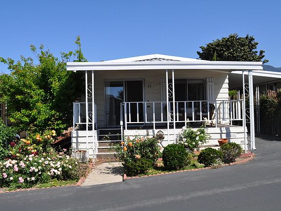 Rancho Santa Barbara, a gated community for adults 55+ with pool, spa, clubhouse, private gym and golf course, and fenced dog park. This is a fixer in need of complete remodeling or remove and replace with a new 20 x 44. Space rent just $468 per month! 2 bedrooms, 2 baths, covered front deck. Estate sale, sold strictly 'as is', must be a cash sale ,no financing available.