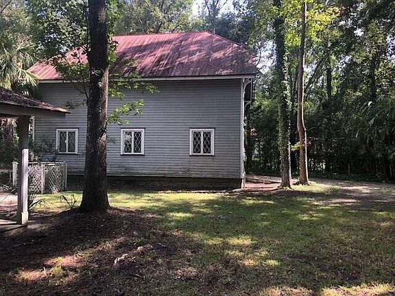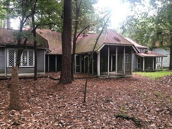 This was known as a Hunting Lodge in years past and it has unique features that likely served this use well. The main living space and dining room is divided by a center room brick fireplace. To the right of this room is a very large master bedroom and bath suite with walk-in closet (the old safe is still in the closet) all these rooms open to an exceptionally large screened porch. Obviously it needs new screening but it has soaring ceilings and adjoins all portions of the house. What a place to sit and enjoy the wooded acreage. To the left of the main room is a library with built-in bookshelves to house or display your collections. Kitchen is at the back and is very well arranged. Laundry area is at the end of the kitchen with a half bath for this side of the house. Porches abound wit afront porch. The main door leads to living space and door to the left leads to the library. There is a back porch entry to the kitchen. The barn is a 2 story area with loft. This space is accessed from the back doors and the front doors lead to a one car garage space. Electric service has been brought to the house and to the barn and public water and sewer service has been installed to the house. (these services were originally served by The Woodlands) Property is being sold as-is and seller desires to make no additional repairs. Please see attached Seller Property Condition Disclosure along with a Supplemental explanation of this Disclosure. See attachment for GR-2 Permitted Uses.(this was formally know as R-1 zoning) A plat is attached plus a lovely article in the Summerville Journal Scene talks about the process that will be completed to protect this property and its historical significance.