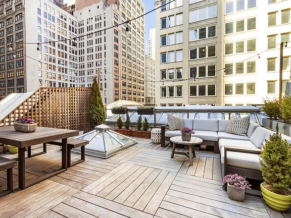 Housed in the former glass factory of Louis Comfort Tiffany, this unique and historic Flatiron home provides the perfect mix of indoor and outdoor living. With soaring ceilings reaching just under 14 feet in most of the apartment as well as a stunning, oversized glass skylight in the living/dining area, this loft is bathed in sunlight throughout the day and is an entertainer's dream. The living/dining area features a wall of custom-built closets which provide tremendous storage. There is an open chef's kitchen with gorgeous Caesterstone countertops, tiled backsplash, top-of-the-line Wolf induction range and Jenn-air oven, and terrific storage space, as well as your own Washer/Dryer. The oversized spa-like bathroom has a beautiful walk-in rain shower and skylight. And if all of this were not enough, off of the living room there is a stunning, landscaped roof-deck terrace measuring in excess of 400sf for the best of outdoor entertaining. Additional features in this special apartment include central HVAC, dark-stained hardwood floors in fantastic condition, and great storage. Located at the intersection of Flatiron and Nomad, this self-managed, boutique coop is a mix of residential and small commercial tenants and has a long and storied history of housing and entertaining some of the all time artistic greats such as Willem de Kooning, Jackson Pollack, Richard Serra, Faye Dunaway and John Chamberlain, to name just a handful. This well-maintained historic building has a full-time superintendent and key-elevator entry, and is a stone's throw from Madison Square Park, all of the wonderful shops and restaurants of Nomad, Gramercy and Chelsea/Flatiron. Sorry no dogs permitted.