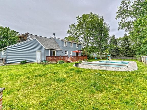 Enjoy a country setting in the Hilton school district while staying close to the conveniences of restaurants and shopping in Greece! This adorable cape is situated on a large lot backing to woods. The fully-fenced backyard is the perfect outdoor space to spend your summers with the in-ground pool, spacious deck, and patio. Inside you'll find beautiful hardwoods, a formal dining room for entertaining, and a large living room with a wood-burning fireplace to stay cozy on cool nights. Have fun cooking in the fresh white kitchen with ample work space on the granite counter tops and lots of room in the cupboards and pantry. A large two-car attached garage, full basement, and extra large storage closet off the master bedroom offer plenty of additional space.
