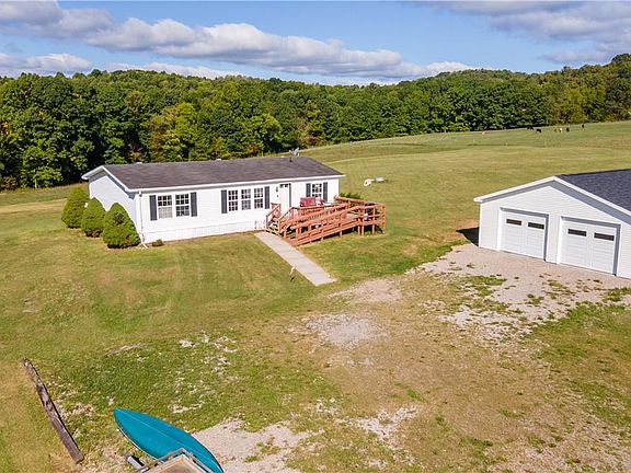 Welcome home to 333 Pennsy Rd, Sligo PA 16255! Upon entering the property you will immediately notice the beautiful landscape and sprawling views totaling 1.75 acres of flat property with some soft rolling hills. This is country living at it's best! This home features a host of updates including a newly installed two car garage (2019), new water softener system (2019), new hot water tank (2022), new central air system (2019), Luxury Vinyl Flooring and so much more. The living room is spacious and boasts a high ceiling and plenty of natural light throughout. The kitchen is spacious and features a laundry room off to the side with additional cabinet space and storage. This 3 bedroom two bath manufactured home includes spacious bedrooms and two full bathrooms. The primary bathroom also features a bath and shower. The wellhouse and shed also provide additional storage space and are an added bonus! This home has so much to offer and awaits it's new owner!