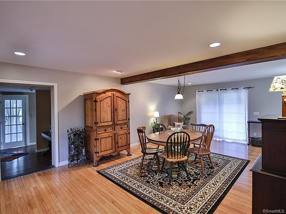 BEAUTIFUL 3515 sq ft FARMHOUSE style home w/ VENT FREE GAS FIREPLACED living room w/ "BELLAWOOD" DARK MAPLE FLOORING. One of a kind home w/ EXPOSED BEAMS throughout and BIG BRIGHT WINDOWS. HARDWOOD STAIRS w/ BOOK CASE BUILT IN on LANDING. APPLIANCED kitchen next to LARGE dining room w/ LIGHT MAPLE WOOD FLOORING. SLIDER leads to 16 x 10 COVERED deck. FULL bathroom and 1/2 Bath, SUNROOM/ STUDIO and an OFFICE on the first floor. MASTERSUITE has a HUGE WALK IN CLOSET and is connected to the master bath w/ SOAKING TUB and CUSTOM TILED SHOWER w/ SEAT & STONE floor. DOWN THE HALL 3 additional bedrooms upstairs w/ LAUNDRY for convenience and another FULL bathroom. MANCAVE in the lower level to entertain and a WORKSHOP. PAVED driveway leads ATTACHED 2 car garage and FARMERS PORCH on the front. GENERATOR HOOK UP. Sit under the PERGOLA or on the PATIO and admire the landscaping and fruit trees in the private 1.46 ACRE back yard. 2009 WINDOWS & DOORS. RIGHT on the RI LINE!