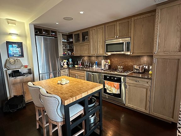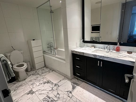 Welcome to luxury living at One Rector Park! This expansive one-bedroom residence offers a spacious private balcony, where you can unwind while taking in breathtaking views of the Hudson River and the iconic Freedom Tower. Inside, the chef's kitchen is designed to impress, featuring top-tier appliances, elegant Italian Carmel Brown marble countertops and backsplash, and custom White Oak shaker-style cabinetry, blending both form and function. The serene master bathroom provides a spa-like experience, complete with a deep soaking tub and an in-wall flat-screen TV, perfect for ultimate relaxation. The home also includes a convenient in-unit washer and dryer, along with a custom-built walk-in closet, adding to the luxurious lifestyle this residence affords. One Rector Park offers an impressive suite of amenities to enrich your day-to-day life. Enjoy a fully-equipped windowed fitness center, a private residents' lounge, "Bar and Books" event space, a children's playroom, and a business and homework center. The building features a 24-hour attended front desk, full-service concierge, and on-site parking (subject to availability and fees). Located in the heart of Battery Park City, you'll find tranquility with Rector Park right outside your front door, while also being just steps from the vibrant dining and shopping options at Brookfield Place. Commuting is a breeze with easy access to multiple subway lines nearby. Embrace the best of waterfront living in this exceptional home at One Rector Park. Please note: Unit will be empty, cleaned and painted before new tenant moves in!