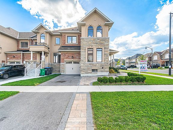 Truly a Show Stopper! This 4+1 bedroom, 4 bathroom executive end-unit freehold townhouse is perfectly situated on a quiet, family-friendly street in the heart of L7A. Boasting over 2,200 sq. ft. above grade plus a professionally finished basement, this home combines space, style, and functionality for modern living. Enjoy a separate living room, a family and dining combination (great room), and a well-designed open-concept layout ideal for entertaining. The family-size kitchen features an eat-in area, stainless steel appliances, and ample cabinetry. The primary bedroom includes a walk-in closet and a 5-piece ensuite for your comfort. All bedrooms are generously sized, and the second floor offers a dedicated office space perfect for working from home. The professionally finished basement features an open-concept bedroom, gym area, 3 pc bathroom and play zone, providing additional living flexibility. Outside, enjoy beautifully landscaped front and backyard spaces, perfect for relaxing or hosting gatherings. Additional highlights include double-door entry, upgraded finishes throughout, and pride of ownership in every detail. This home truly has it all must be seen to be appreciated!