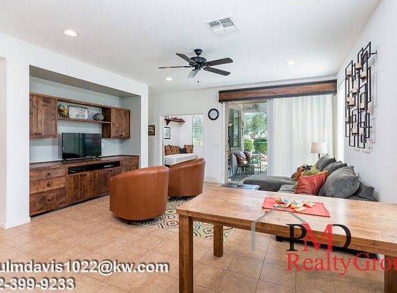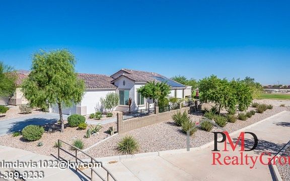 BETTER than NEW! Used as a Snowbird retreat- rarely lived in. This popular Lantana model in Sundance Active Adult community with upgraded features will go fast! A premium lot with seclusion, plus to-die-for golf course and mountain views. Custom alder wood built-ins include entertainment center in family room and den shelving and desk in the office. Garage has custom built handy man work areas as well. Solar panels are owned ~ No lease to worry about for instant savings on power bills. Come see this one! On the golf course with fenced backyard.