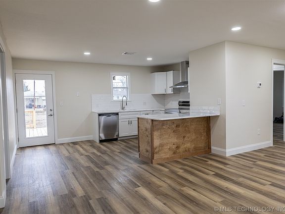Inside features include: Open concept living room, newly remodeled LVP floors, brand new kitchen with granite counter tops and a bar. Kitchen also has all new cabinets and appliances. Added on 3rd bedroom with bathroom. This bathroom has a double vanity sink and also a large walk in shower. Hallway bathroom completely remodeled as well. Laundry room added inside for your convenience.