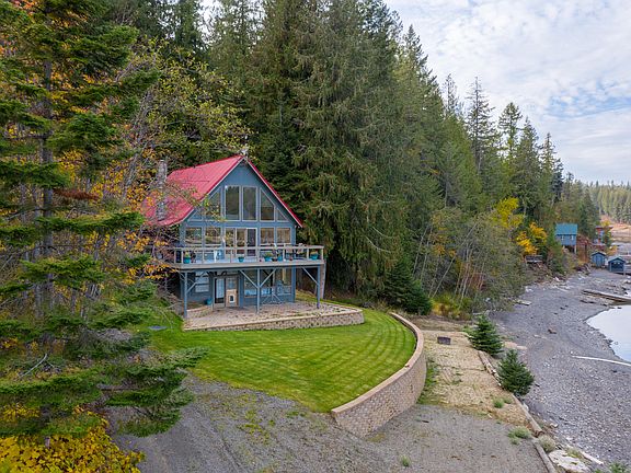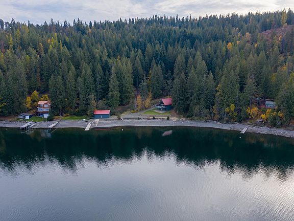 Pend Oreille Lake, Camp Bay, 272' Of prime lake frontage, 1.01 acres, 4 bedrooms, 3 baths 2,576 sq ft home with amazing views. Large deck and dock. 576 sq ft 2 car detached garage, boathouse at waters edge. Unmatched views from this beautiful waterfront property. Floor to ceiling windows in the great room provide immense natural light. Large beach area will help you create amazing memories for years to come. Large second garage/shop at water's edge provides ample room for all of your water toys. Large deck and covered patio overlook the beautiful water of Lake Pend Oreille. Don't miss out on this amazing opportunity to own this beautiful waterfront property.