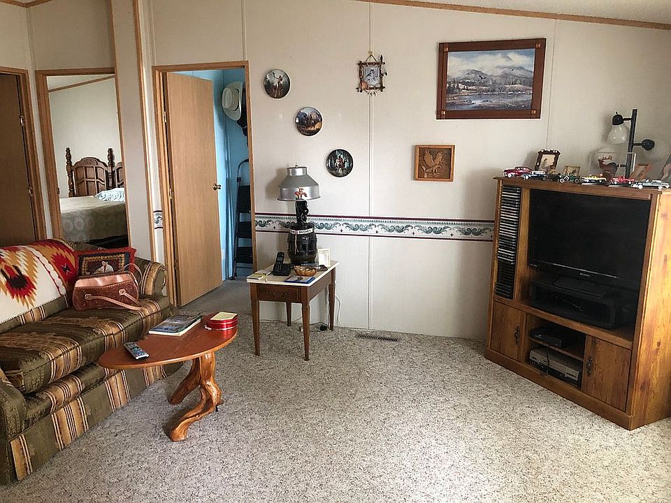 Small double wide on a rental lot. Two storage sheds and a carport. Lot rent is $340.00 per month. Natural gas heat. City sewage and garbage removal and electric. No charge for water. House is skirted and the lot and neighborhood has plenty of trees.