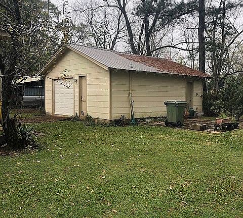 Comfortable, well-maintained home with large extra deep lot, fruit trees, scuppernong and grape vines, pecan trees, chestnut trees, and beautiful lawn with lots of shade. This lovely home has two large bedrooms with original hardwood floors, fully renovated bath, large dining and living rooms, kitchen, and back room with laundry area. The exterior has maintenance-free vinyl siding, large welcoming front porch, a detached 24x24 garage with attached covered shed parking, outside entertaining area, and a peaceful goldfish pond. New metal roof installed 2016, new metal roof on garage installed in 2019, bath remodeled in 2018 with claw foot tub, new hot water heater, beautiful original mantels and hearths.