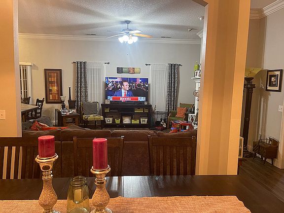 Great corner lot brick and siding home in Greystone Subdivision. Enter into an open floor plan with a formal open dining room and spacious living room. The living room has a wood burning fireplace. The kitchen boasts lots of counter space, new matching appliance, and along with an eat-in area that opens to an amazing back patio and yard. This split bedroom plan master bedroom has its own access to the patio along with a large bath and walk in closet. Bedrooms two and three share a nice sized tiled bath. The large bonus room upstairs is 11x24 and great to use for entertaining or a fourth bedroom. The privacy fenced back yard has an above ground oval pool with a large deck. The patio has been extended for entertaining with a custom built-in kitchen that was made to fit a Blackstone and green egg. This home had a new roof in 2019 and a new air and heat pump was installed in 2021. The 2-car garage has extra storage space for use and this corner lot has extra street parking and allows for a spacious yard for the kids to play or just to enjoy.