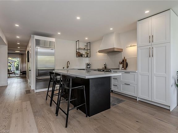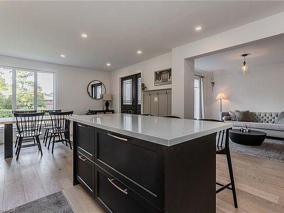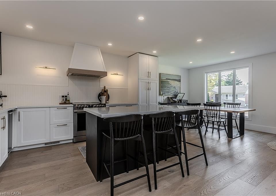 Charming family home in the heart of Burlington’s vibrant core! Beautifully renovated from top to bottom, this stunning property perfectly blends modern comfort with timeless character. Offering an exceptional lifestyle opportunity, it’s just a short stroll to the lake, downtown shops, restaurants, and parks—everything your family needs right at your doorstep. Step inside to a bright, open-concept main floor featuring engineered white oak hardwood throughout and a layout designed for family living. The renovated kitchen (2019) boasts quartz countertops, a large island with breakfast bar, stainless steel appliances including SubZero fridge, Miele dishwasher, and a newer stove (2025). Timeless bead-board backsplash, rustic range hood, and designer lighting add warmth and style. The spacious dining and living rooms are filled with natural light, while the family room with walkout to the backyard creates seamless indoor-outdoor flow. A stylish 2pc powder room, mudroom with shiplap detailing, and a convenient main-floor primary suite complete this level. The modern 4pc ensuite offers a dual-sink vanity and glass walk-in shower for a touch of luxury. Upstairs features two spacious bedrooms with cozy reading nooks, a beautiful updated 4pc main bath, and a flexible home office - ideal for remote work or study. The lower level, renovated in 2013, offers fantastic flexibility with a second kitchen, rec room with fireplace, additional bedroom, laundry, and 3pc bath—ideal for in-laws or teens. Outside, enjoy a private backyard oasis with a tiered wooden deck and gazebo, interlock stone patio, landscaped perennial gardens, and plenty of green space for children and pets to play. The inviting front deck and manicured gardens create lovely curb appeal, making this home truly move-in ready. Welcome to the perfect blend of lifestyle, location, and family comfort in one of Burlington’s most sought-after neighbourhoods.