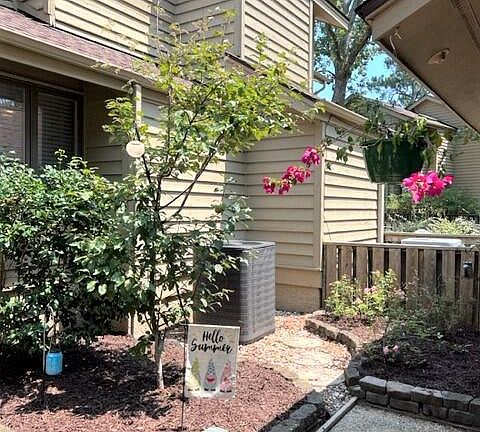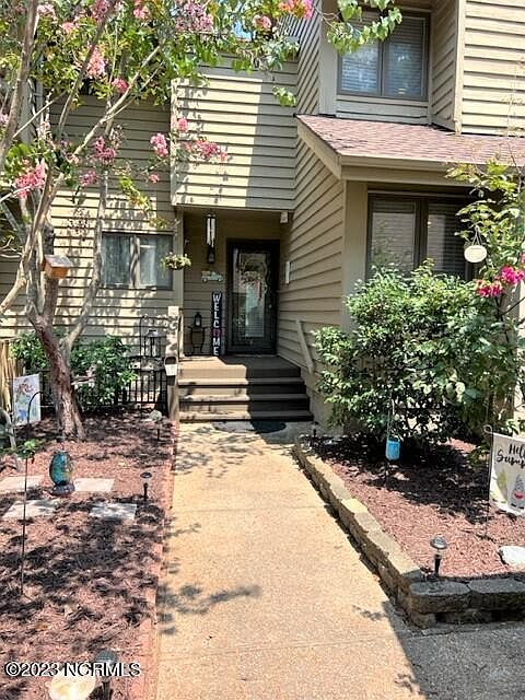 Desirable Olde Point Villa townhome for sale with stunning golf course views. This 3Bd/2BA charming home has many recent upgrades such as, hardwood flooring in main living area, LVP flooring in kitchen, beautiful custom built-ins in the living room, roof replacement in 2019, water heater 2019, freshly painted primary bathroom, new decking, planation blinds, and a charming coastal color palette throughout. Walk to Nineteen restaurant or join their annual golf/pool membership. Schedule your showing to see this beautiful unit before it's gone!