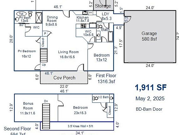 - Total interior livable area: 1,911 sqft