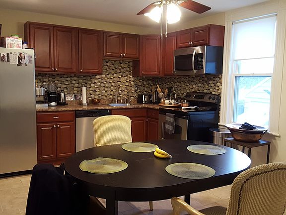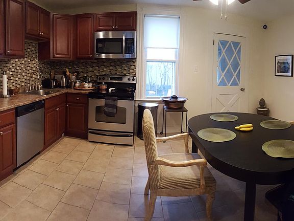 Welcome Home! This charming Colonial offers 3 bed, 1 bath, tastefully updated and well cared for, with updated kitchen with newer cabinets, stainless steel appliances and tiled back splash. The floors are a combination of tiles in the kitchen, hardwood floors in the Living room and hallways, and carpet in the second level. Large bath with granite sink, tiled floors and tiled walls around the shower. Enjoy the private back yard, conveniently fenced in. Large two car garage with automatic door opener and fully insulated. Easy access to 95. Walk to High Park! Tenant responsible for all utilities, snow removal, and lawn care.
