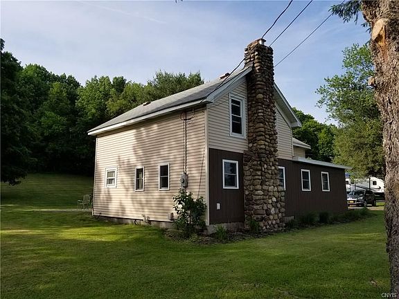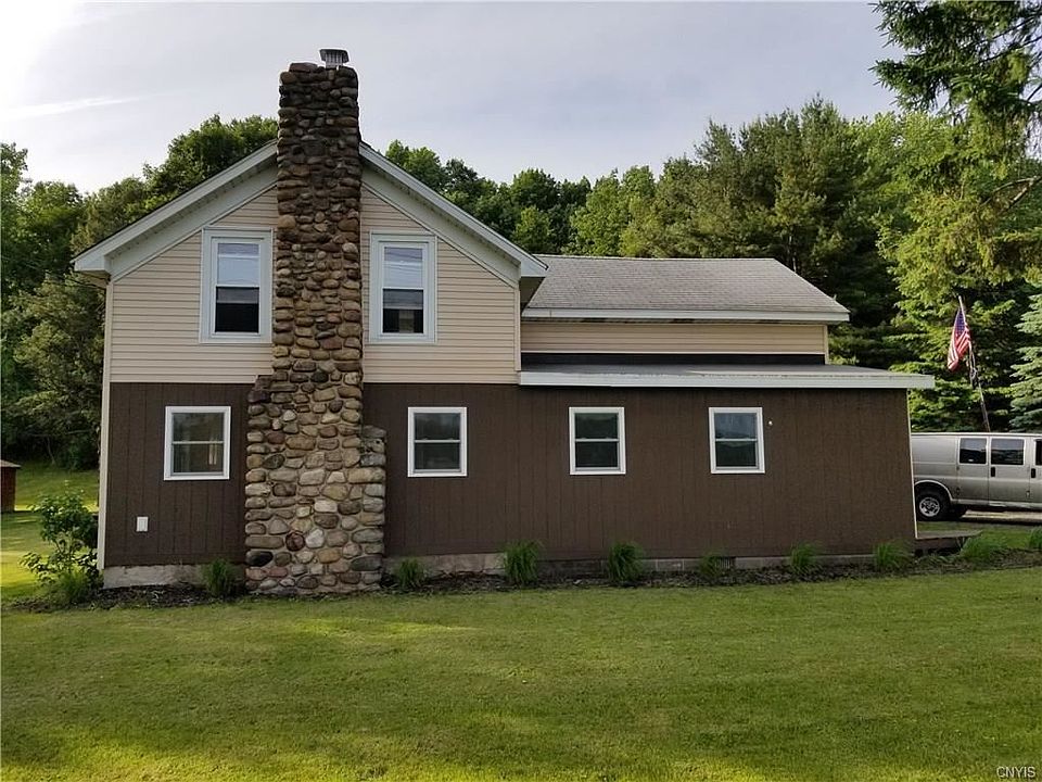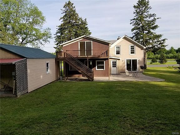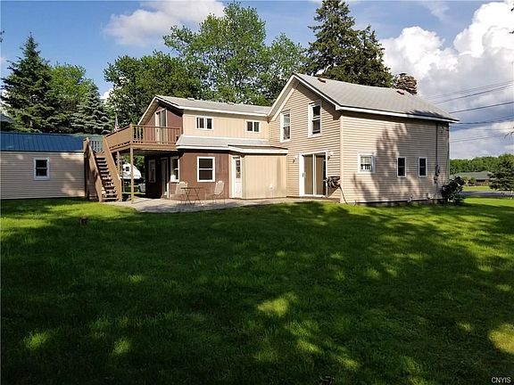 This remodeled home is impressive & ready for today's buyer. Offering 4 sizable bedrooms & 2 full baths. The master bedroom has a sliding glass door that leads to a large balcony overlooking the private 1 acre back yard. Convenient 1st floor laundry and full bath. Enjoy the large LR with the original Cobblestone fireplace with a new Mendota gas insert. The Kitchen has new cabinets, appliances, ceramic floors & a breakfast nook. Other improvements include a high efficiency furnace, new patio, windows, doors, cement floor poured in the basement, freshly painted and refinishing hardwood floor in LR. Located directly across from Millstone Golf course in Elbridge and minutes to restaurants, shopping and more.