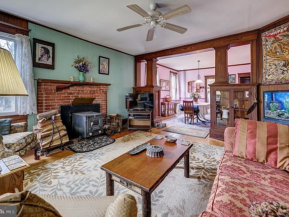 Welcome to your new home! This 4-bedroom, 1.5-bathroom Cape Cod offers the perfect blend of comfort and natural beauty. From the natural hardwood floors to the charming chestnut built-ins, this home has plenty of old charm. The living area has a cozy wood-burning stove, and just a few steps away there is a sun porch letting in an abundance of natural light, providing a great space to relax. Storage is plentiful, ensuring that all your belongings have their designated space. Plus, there is a large detached garage where you can securely store your vehicles and outdoor equipment. Situated on a generous .84-acre lot, this home features blueberry bushes and a pear tree! With a little imagination, you can turn this into your dream home. Don't miss out on the opportunity to call this charming Cape Cod home yours. Schedule a showing today and experience the perfect blend of comfort, convenience, and natural beauty that this property has to offer. This is an AS-IS sale
