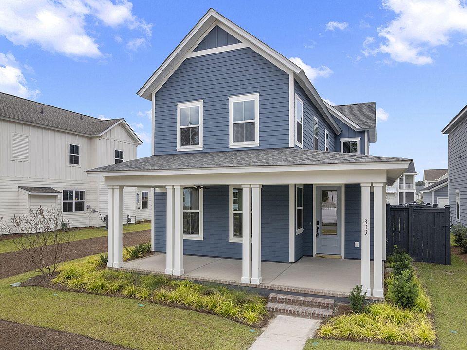 As you enter the Madison, you're greeted by a spacious living area that seamlessly flows into a dining space and an open kitchen. Large windows flood the area with natural light, making it bright and airy. The kitchen is equipped with modern appliances, ample counter space, and a large island for cooking and casual dining. At the back is an attached 2-car garage with extra storage. Ascending the staircase, you reach a versatile loft area for a family room, home office, or play area. The second level has two bedrooms with closets and large windows. A shared full bathroom with modern fixtures serves these bedrooms. The primary bedroom suite is tucked away for privacy, featuring large windows and an en-suite bathroom with a double vanity, separate tiled walk-in shower, and walk-in closet.