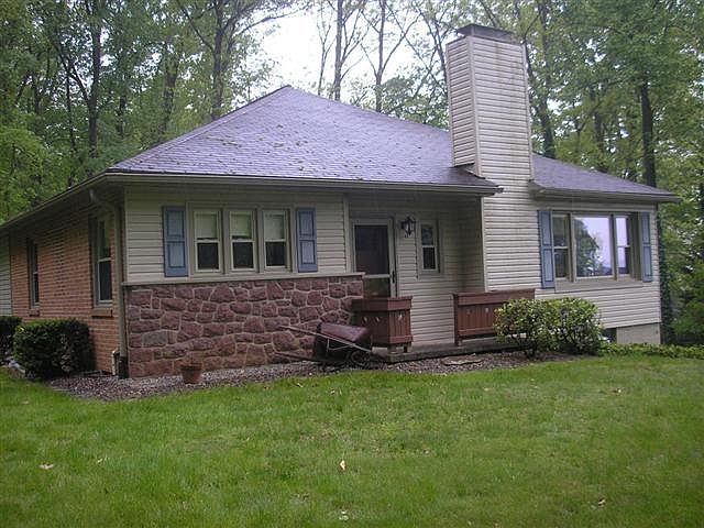 Last property on a dead end street-''Country like'' lot w/Borough conveniences-3 bedroom, 2 bath brick/vinyl rancher w/daylight basement-Living room brick fireplace, modern kitchen, dining room, large master bedroom w/full bath-Huge 8x38 side/rear porch-Privacy @ its best-Minutes to Rt. 222, PA turnpike