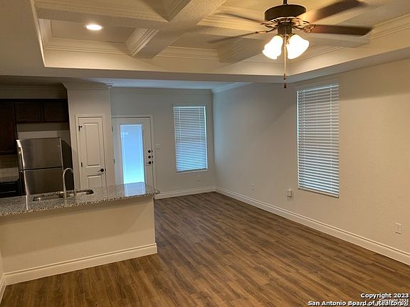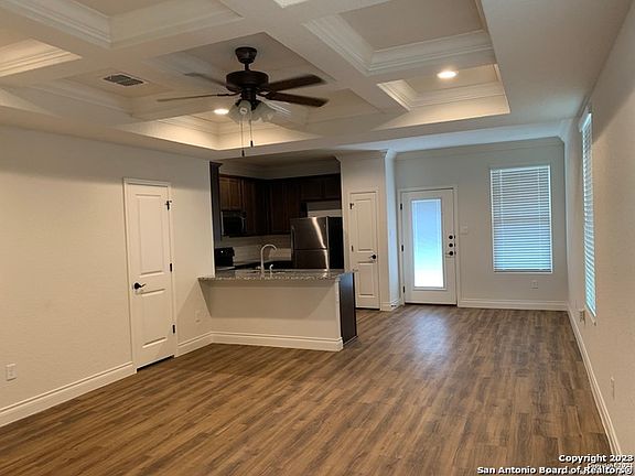 Granite counter tops, 42" cabinets, stainless steel appliances, coffered ceilings, oil rubbed bronze fixtures, 9ft ceilings, designer front door, oversized 1.5 car garage with automatic opener and backyard patio with no neighbors behind you. You also have easy access to I-35 from this tucked away community.