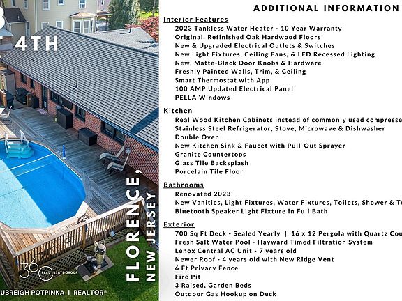 OFFER ACCEPTED Welcome to 333 West 4th Street - a charming abode for those seeking a seamless blend of refined living and relaxation. As you step into the home, you are immediately greeted by a warm and inviting atmosphere. The expansive bay windows allow ample natural light to flood the space, creating an ambiance of openness and tranquility. The sunning, original hardwood flooring stretches out before you, guiding you through the open living and dining area. This home measures just under 1,400 square feet, not including the massive basement, providing ample storage or a ready-to-be-refinished open layout to double your living space. New ceiling fans have been installed in all 3 bedrooms as well as recessed lighting in the living area. Freshly painted walls, trim, and ceilings throughout the entire home. New, matte-black door knobs and hardware provide a fresh and modernized feel. Both bathrooms are newly renovated presenting new vanities, new light fixtures, new water fixtures, and new toilets. The bluetooth speaker light fixture allows you to listen to music, a podcast, or an audiobook while relaxing in the new shower and tub. New outlets and switches have been upgraded and installed with a new 100 AMP electrical panel in the garage. The new, tankless water heater ensures endless hot water and is accompanied with a 10-year warranty. The roof is 4 years old and has a new Ridge vent. The Lenox AC unit is 7 years old, and all windows are the trusted PELLA brand. Adjust the home's temperature using the phone application which is connected to the Smart Thermostat. The natural gas fireplace heats the entirety of the home during the colder, winter days with ease. The kitchen and heart of any home, is what truly steals the show. Impeccably designed with entertaining in mind, this kitchen presents granite countertops, glass tile backsplash, stainless steel appliances, a double oven, real wood cabinets, porcelain tiled floor, and a spacious center island with a built-in, gas stove-top. Yet, what awaits beyond the backdoor is what truly sets this residence apart. Step onto the back deck, and prepare to be transported to a world of ultimate relaxation and fun. Centered lies the fresh saltwater pool, which seamlessly blends into the large, wooden deck and is kept clear with the help of the no-maintenance, Hayward, timed-filtration system. The pergola compliments the space with a Quartz countertop bar for hanging out and laughing with family and friends. Additional yard space, a fire pit, gas hook-up, and 3 garden beds allow for even more memories to be made. No home is complete without a space for outdoor gatherings, and this property delivers just that. As you wrap up your tour of the residence, you may wonder about the practicalities of owning such a home. Rest assured, this property addresses your every need. With its proximity to parks, notable schools, the Delaware River, and major highways, convenience is only another box to be checked. Come home to a place where every comfort and desire is realized, as you embrace ownership of a residence that truly embodies the spirit of modern living.