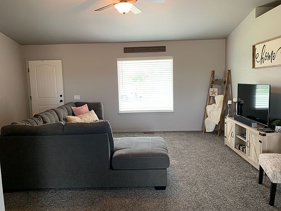 Beautifully designed 3 bedroom 2 bath home built in 2018. This home boasts a color scheme that is sure to fit your liking! Sod recently added in front yard as well as some landscaping. Finished 2 car garage! Microwave, refrigerator, blinds and stove included. Come on over and take a look at your dream home!