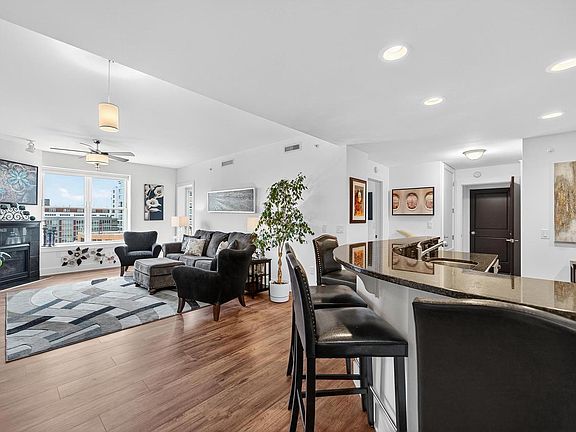 Experience elevated city living in this elegant 2BR/2BA condo in the desirable Metropolitan Place II. Featuring an open-concept design, the home boasts updated flooring, a cozy gas fireplace, and expansive windows framing stunning city views. The modern kitchen includes granite countertops, stainless steel appliances, and a breakfast bar, perfect for entertaining or casual meals. The spacious primary suite offers a private bath and walk-in closet, while the versatile second bedroom is enhanced with a queen-size Murphy bed for flexible use of space. Additional highlights include in-unit laundry, secure building entry, and covered parking in the above ground ramp. Ideally located steps from shopping, dining, entertainment, and the Capitol Square.