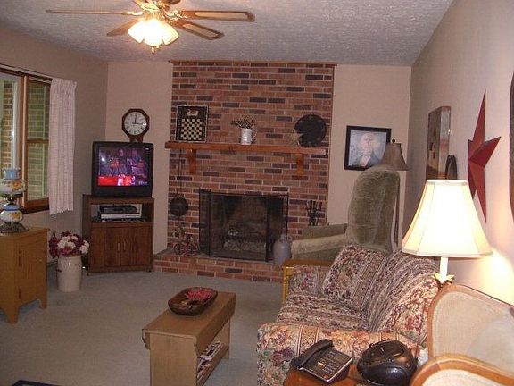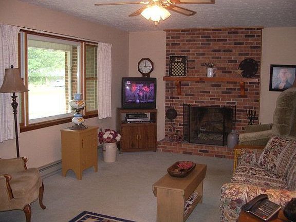 Home is sitting on 5.53 acres in very desirable area. Fire place in large living room, three bedrooms two and one half bath's, beautiful maple kitchen cabinets, Anderson windows and 2 two car garages. Move in condition