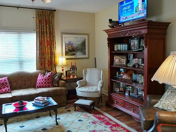 - Interior: Foyer - Entrance, Cable TV Connections, Ceilings 9 Ft Plus, Double Vanity, Gas Logs, Separate Shower, Walk-in Closet, Bookcases, Garden Tub, Tile Bath, Ceilings - Trey, Hardwood Floors, Tile Floors