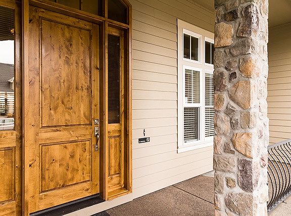 - Exterior features: Stone, Wood products, Composition