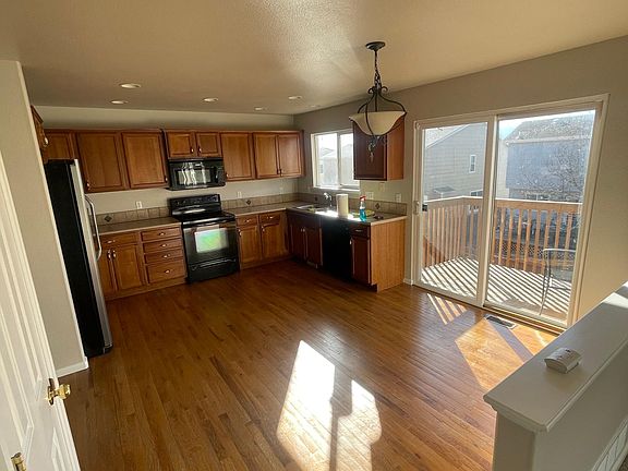 This stunning single family home is 3,066 square feet with 5 bedrooms and 4 bathrooms. The home has an open floor plan with vaulted ceilings, a gas fireplace in living room and vinyl plank flooring in main areas. The kitchen offers fully equipped black appliances, electric stove and dishwasher, solid counter tops, and pantry. Three bedrooms and two bathrooms are located upstairs including an large master bedroom. Updates include new carpeting, fresh paint and a newer water heater. Located near the Powers Shopping Promenade, Peterson AFB and Schriever AFB. School District: Colorado Springs 11. Rent covers HOA fees and trash. Tenant pays utilities, gas, power and internet. First month, Last month and Deposit due at time of move in. Pet deposit/pet rent to be discussed.
