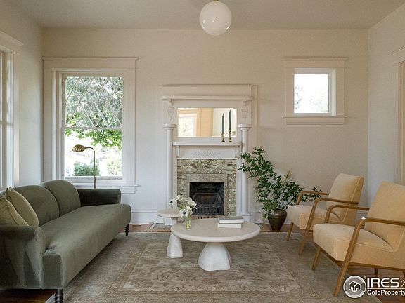 Perched at the top of the hill in the Clayton neighborhood, this historical brick home c.1898 has undergone a complete restoration, envisioned by nationally recognized interior design firm Larapin Design. The home sits on a large 7,810sf lot and is nestled amongst a variety of mature trees & shrubs including pine, maple, oak, apple, lilac, and Russian olive. With unobstructed exposure on all sides, natural light pours through to fill the interior, while sweeping views of downtown Denver and the Rocky Mountains can be enjoyed from the second floor. An extremely thoughtful approach went into the renovation, combining preservation of the original features with a fresh modern design. Historic features include diamond lite wood windows, tiled fireplaces (2), wood floors, woodwork throughout, high ceilings (9'10" first floor / 8'10" second floor), and a spectacular curved wood staircase at the entry. Updates to the home include all new electrical wiring, HVAC, and plumbing throughout. The kitchen was completely remodeled with new custom cabinetry, Calacatta marble counters & backsplash, new appliances and fixtures, Kolbe windows, and custom French doors that open to the expansive yard. Upstairs, the primary suite includes a secluded bedroom with new Kolbe windows, and a generous sized ensuite bathroom with walk-in marble tile shower, custom vanity with marble counter, and a clawfoot tub that sits perched at the west facing window. The laundry closet is conveniently located on the second floor hallway, central to the remaining three light filled bedrooms and shared updated bathroom. The unfinished yard offers endless landscape possibilities, with an abundance of space to create a private outdoor retreat for gardening and entertaining. The detached 2 car garage received a new roof and garage door. Centrally located in the heart of Denver, the lucky new owners of this home will enjoy restaurants, cafes, and breweries all within walking distance.