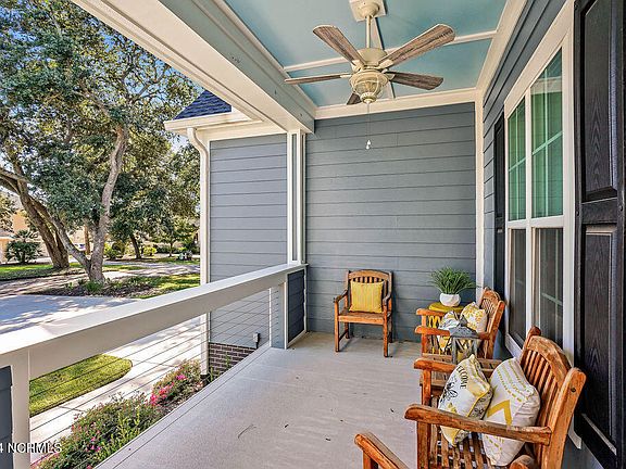 Discover the Bonny Blue home in the prestigious Lockwood Folly Golf Course Community, where luxury meets serenity. With over 2,800 sq. ft. of elegantly designed space, this home offers a sparkling view of the Intracoastal Waterway from the front porch and the lively 1st Green & Tee from the back deck. You Will Love the Spacious & Bright living space, and appreciate the 10' ceilings on the first floor, which enhance the airy feel throughout. *Fully Furnished: Move in hassle-free with furnishings included with an acceptable offer. See Exclusion List. The many flexible spaces include a dedicated office with glass barn doors, a 14' x 16' bonus room/bedroom, 3 additional bedrooms, and 3.5 baths. This is a Chef's Upgraded kitchen with soft-close cabinets, Samsung 'Bespoke White Glass' appliances, Calcutta Carrera quartz countertops, and a generous island with a farmhouse sink. Plus, a walk-in Butler's Pantry customized with large wooden shelving for your smaller appliances with an extra fridge! The Luxurious Master Suite showcases dual vanities, an inspired tiled shower, a sumptuous soaking tub, and a custom walk-in closet. The Garage has enough room for a golf cart, workbench, and your vehicle. The Outdoor Oasis is a fun addition revealing a 12' x 30' Trex deck with an outdoor kitchen, comfortable seating, a TV for game days, and a festive atmosphere perfect for entertaining AND there is room for your fire-pit !