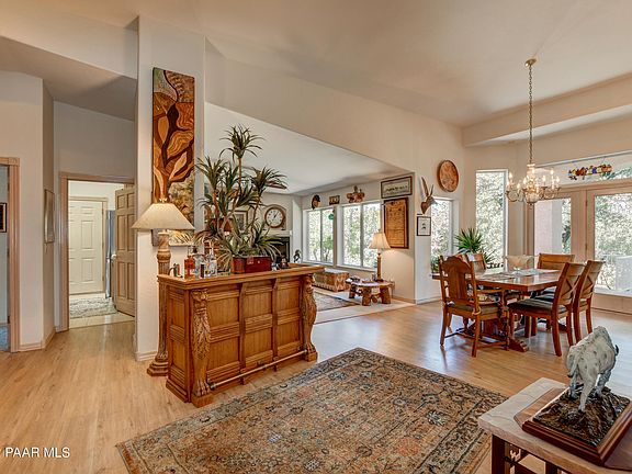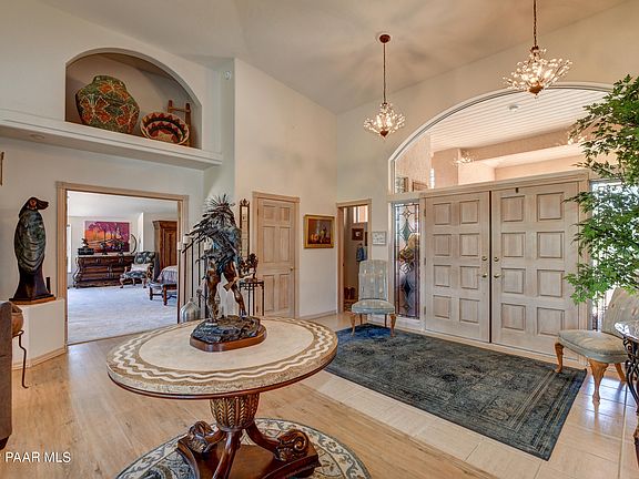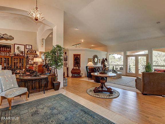 Located at the base of Lookout Mountain/ sits this beautiful custom built home, with courtyards and fountains, boulders and trees on a 1.28 acre parcel with gates, in Charla Acres. Single level, with a courtyard of paver stone walkways that lead to beautiful double doors that open to a grand 14' ceiling living room. All rooms are extra large. Chef's Kitchen with Granite island endowed with cabinets galore. Massive windows throughout. Library off the entry area, Master Bedroom with sitting area that opens up to a large covered patio that looks out onto a park like setting of trees and boulders. Home was designed for entertaining. Three-car garage with a walk-out area with Green House, storage. A Casita could be built on this in the CITY property. RV Parking, NO HOA