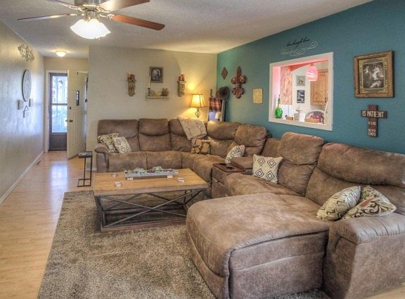 Such a treasure in south Joplin! This 3-bed, 2-bath spacious ranch has fresh decor throughout including new paint & carpet. A large living room welcomes family & friends while a family room allows extra seating. The kitchen has rich, wood cabinetry, updated counters, and a breakfast nook. The spacious laundry room leads to the 3rd car garage has a storm shelter and is perfect for a motorcycle, mower, or golf cart and also has a built-in workshop area. The master bedroom has two closets and a master bath with an elegant tiled shower. Back yard is fenced and shaded. Call today for your tour today!
