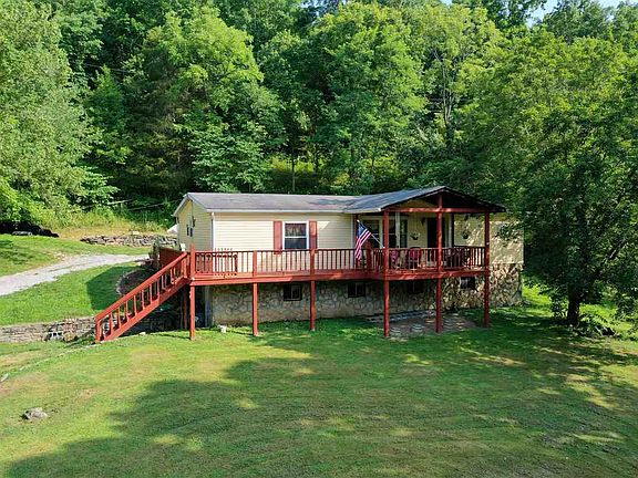 Turn into the driveway and cross the bridge into your own piece of paradise. This is a 3 Bedroom, 2 Full Bath Double Wide on a Full Poured Foundation Basement. Lower level has a bar and lots of space plus a flex room that could easily be a 4th Bedroom. The front covered deck overlooks the creek and wraps round to the back where a level yard makes for a great entertaining space. Buyer to verify all information.