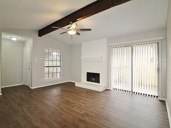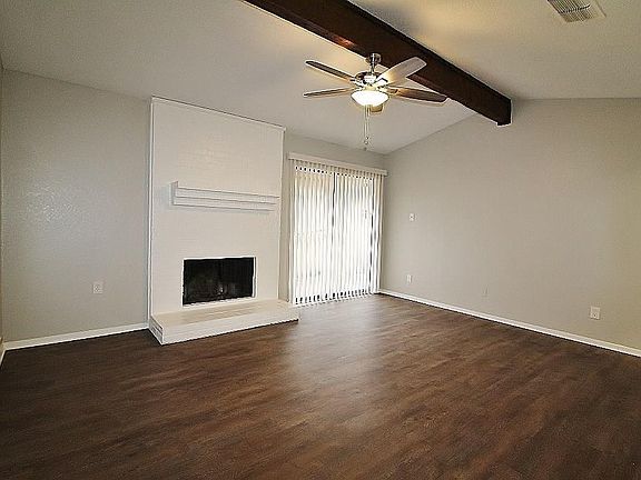Cute! Cute! Cute! Completely updated 2-1.5 duplex ready for move-in! Updates include fresh paint inside and out, 2 inch blinds, wood plank vinyl flooring, ceiling fans, countertops, fixtures, fence and more! Wood beamed vaulted ceiling and a cozy fireplace in the living area. Chef's kitchen with granite countertops and new stainless steel appliance package including a built-in microwave, dishwasher, flat top stove and refrigerator. Nice sized bedrooms, both with ceilings fans and double closets in the master. 1 car carport with garage door, full size utility area, CH&A and lawn maintenance included! Great location near shopping, tons of restaurants and major thoroughfares! Schedule your appointment today!