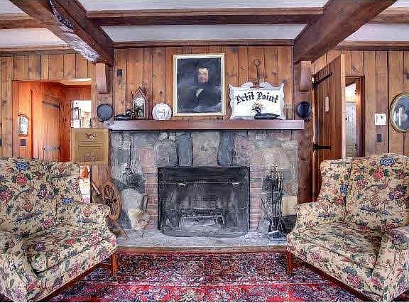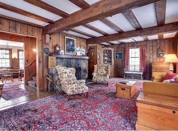 Built in 1927 in the style of a 1720s Pennsylvania farmhouse, this charming home retains its original character. Fieldstone fireplace, beamed ceiling and wide plank flooring. Double lot overlooking Bass Lake Park. Poised for a renovation.