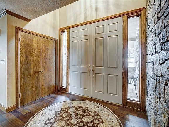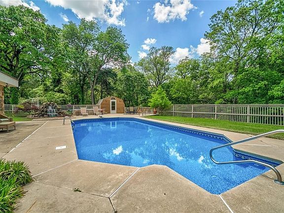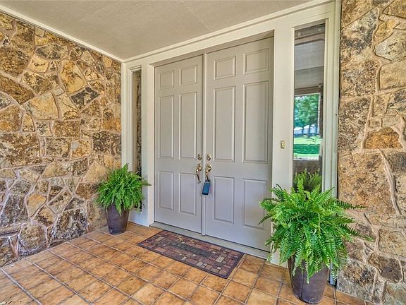 This spectacular home has 4,564 sq. ft. and sits on 1.357 acres, a wooded park-like setting. As you drive down the curving drive, the acreage presents a statement of nature and tranquility. Continuing down the circle drive one side steers down the left fork to park under the two-car portico. This property feels like a rural setting but is conveniently located in the middle of town in Grove School District. The soaring ceiling with massive beams in the living room creates a perfect entertaining area in front of the grand stone fireplace. The outdoor living space is just as impressive with a 18X36 in-ground pool, stone water feature, pool house with a bathroom. The expansive deck and patio area enclosed with a fencing and a stone wall. Prepare to see wild turkey and deer almost daily. A 12X20 custom-made storage building at the end of the driveway provides additional storage space. Amenities list available