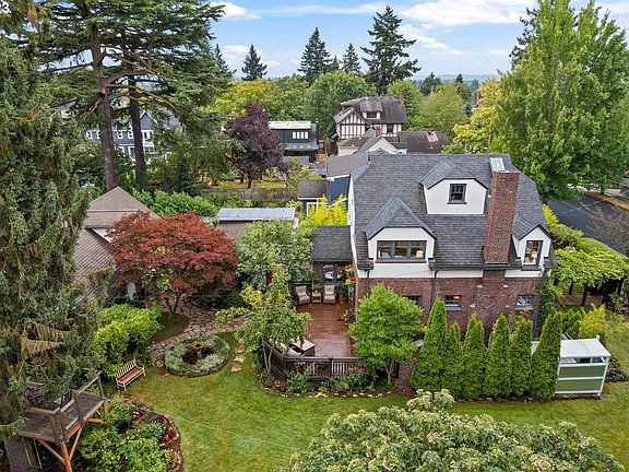 OFFER RECEIVED all offers to be submitted by Monday 10/23/23 at 12:00 pm. A garden oasis in one of Portland's most sought-after and cherished neighborhoods. An exceptional 1924 Alameda English Tudor with a detached charming Carriage House ADU, sits on a 10,900sf oversized DOUBLE LOT with TWO DOUBLE GARAGE. An unmatched property lies hidden behind a well-established hedge with the allure of your own private park. The yard is an urban fruit orchard complete with a variety of fruit trees and grapes with plenty of room for the urban gardener to explore farm-to-table opportunities. Multiple outside seating areas to relish the romance of green space surrounding the house. Whether enjoying the area under the old-growth Blue Spruce trees, the Zen rock garden wellness retreat, or visiting on the oversized deck with family and friends overlooking the entire yard, you have the privacy to enjoy it all. The spacious traditional home is layered with classic vintage details and original charm inside and out. Abundant natural light flows into the home from the profusion of windows, creating a warm and inviting atmosphere in each room. The formal living room on the main level has a wood-burning fireplace, along with an ample dining room, and a flex space, office, reading room, or music room, with two sets of French doors. A well-appointed kitchen with a wonderful breakfast nook overlooking the COURTYARD GARDEN. The second level features three light-filled bedrooms and a time-period renovated bathroom with an original bathtub and separate shower. On the third floor, a tasteful and ECLECTIC PRIMARY SUITE awaits with a large walk-in closet, a quaint nook for reading or an office, skylights, and reclaimed interior wood paneling with traditionally papered walls. Multigenerational living, income potential, an unparalleled jewel that offers endless possibilities!