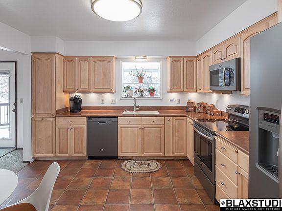 Light & Bright Eastside Home on Large Lot w/Newer Back Deck! Updated Kitchen Boasts GE SS Fridge, Microwave, Range; Maple Cabs w/Slide-Out Drawers & Soft Close Tabs, Solid Surface Counters, Newer Lighting. Open to Dining Room w/French Doors to Deck. Living Room w/Vaulted Ceilings, Cozy Gas FP. Lg Mstr Suite w/Remodeled Prvt Bathroom. Huge Lower Level Rec Room w/Wood FP & Stone Hearth. Newer Boiler