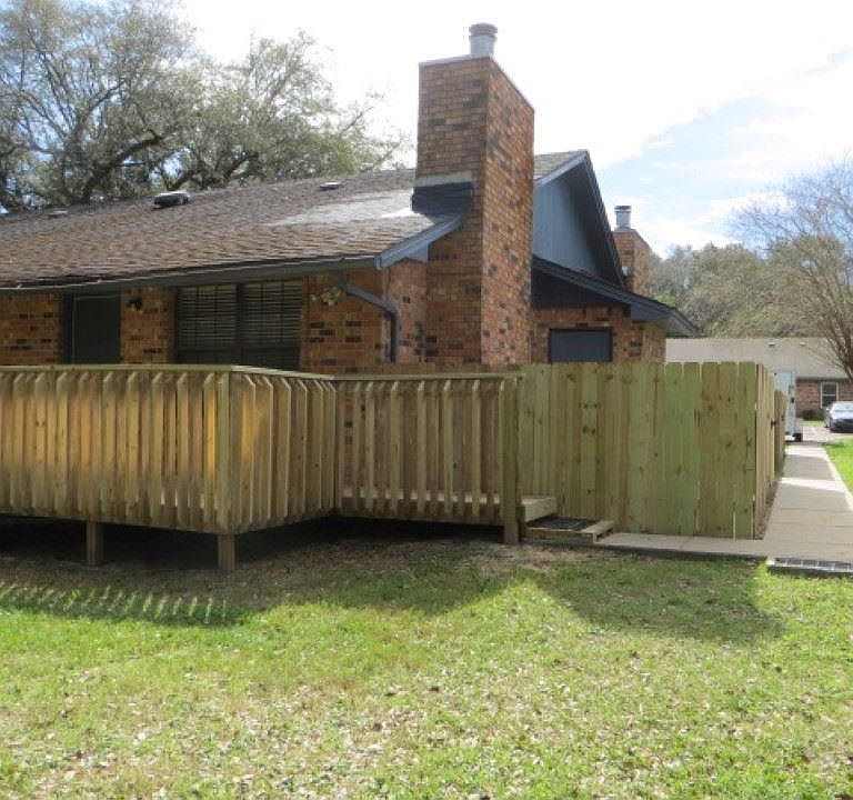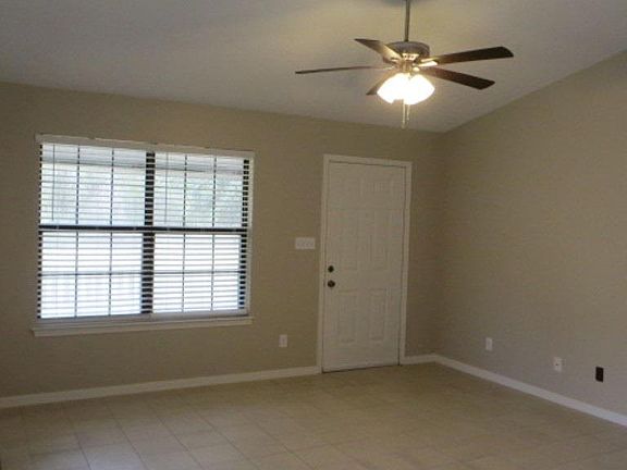 Convenient to Navy Federal & Pine Forest/Nine Mile Road area! Rear unit overlooking the woods. Tile floors throughout. Living room with vaulted ceiling, ceiling fan & fireplace. Dining area off fully equipped galley kitchen. Master bedroom features a vaulted ceiling, ceiling fan & walk-in closet. Guest bedroom also has a walk-in closet. Inside laundry. Private fenced patio with a storage room. Lawn maintenance, water, garbage and pest control included in rent. No smokers. Small pets considered with owner approval.